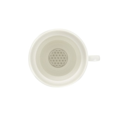 The “Shinno”, tea and coffee mug is made from the finest porcelain in a delicate ivory colour and is ideally suited for the enjoyment of tea and coffee. The design of its subtly-and elegantly-curved shape is based on the Golden Ratio and goes superbly well with the ivory tone of the porcelain. Shimmering softly and silvery inside the mug is the Flower of Life